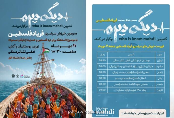 صد کادو: سومین اجتماع سراسری فریاد فلسطین با شعار دیگه دیره در تهران برگزار می گردد.